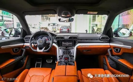 内饰设计:车内造型也延续了家族式设计,与其他豪华品牌的SUV产品所不同的是,兰博基尼Urus的按键造型更有运动感,无论是中控台还是空调出风口的造型,都与Aventador和Huracan非常像。