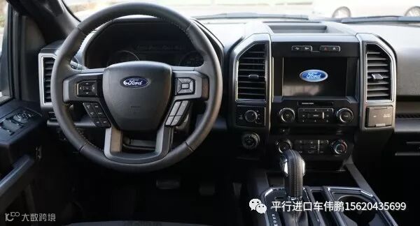 新款F150它的表面颇具动感,内饰奢华,配置富厚,同时兼具跑车的动力机能、越野车的全地形制霸本领和豪华轿车的乘坐恬静性,并且它的改装空间也很大。车内配备标准独特的皮革和布艺装饰的座椅,驾驶员侧的电动十向调节。这些座椅同时具备记忆功能。中央控制区搭配了触控式显示屏,其下方则是多媒体控制区及空调面板,采用旋钮+物理按键的组合。中控功能区域可分为三个小控制区,最上端为音响控制及导航控制,中间为收音机调节控制,最低端为空调及座椅加热控制。在内部空间的庞大基础上,福特也提供了非常具有舒适性与服务性的内饰配置。另外,新车还配备了一块大尺寸的全景天窗。