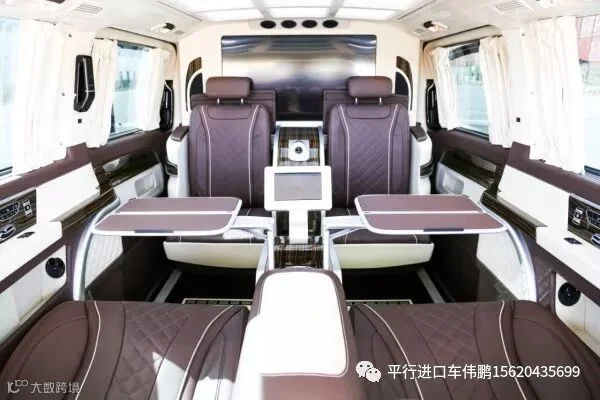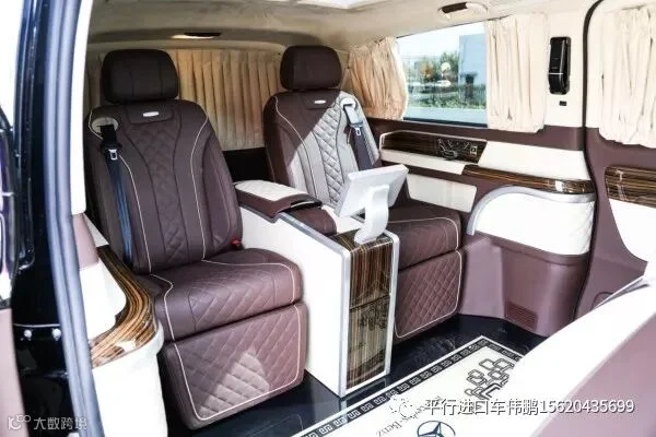 奔驰V250在内部装潢上也进行升级,车体提供真皮、Alcantara以及木材和碳纤维多种材质可供选择。而MPV车型看中的合金踏板、合金门把手以及内装台板等这款车都有所配备。科技配置还有AppleTV、两个独立15.6英寸显示屏、蓝光播放器以及DVB-T信号接收系统等。