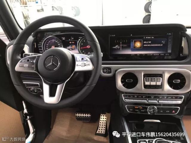 19款奔驰G500内饰是施行了大改方案,更具豪华感,使内饰变得更加具有豪华感和舒适感。中控内饰区域变得更加宽敞,多功能方向盘区域也进行了重新设计,并采用了家族式设计的双大屏以及怀挡设计,并配备了BMUX语音助手