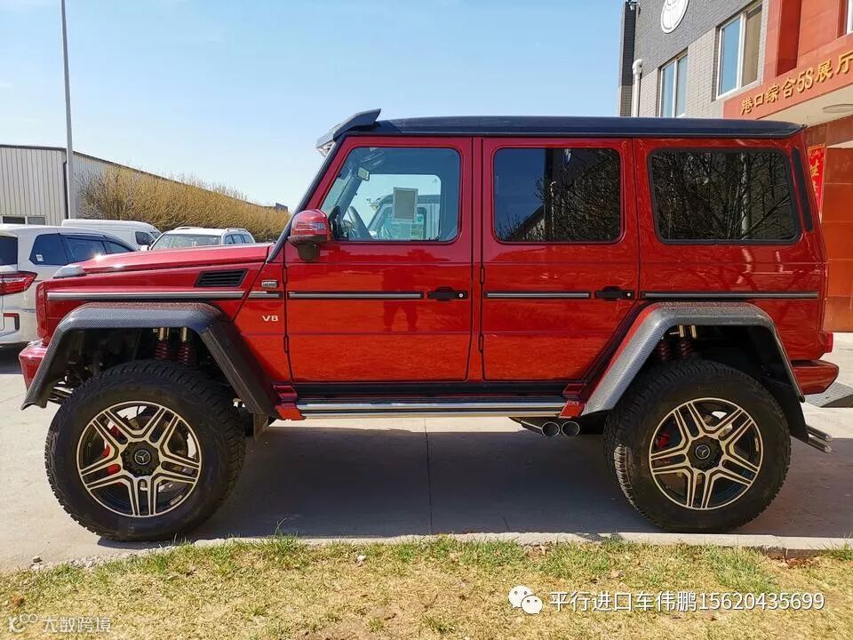 加宽加高的车身、22寸超大轮、Designo内饰、碳纤维套件、双避震系统,以及源自奔驰G63 6X6皮卡的门式车桥(G63 6X6皮卡,是奔驰品牌有史以来最强悍的越野怪兽,6轮驱动,5把差速锁,加上来自“越野之王”乌尼莫克的门式车桥,可以说所向披靡)