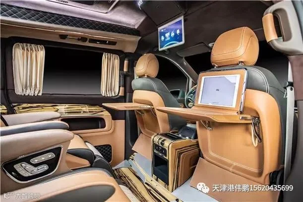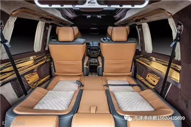 18款奔驰V250L改装版,私人设计私人订购。奔驰V级的前身是大家所熟悉的奔驰唯雅诺,新款奔驰V级提供标准轴距之外还提供加长轴距,座椅提供2+2+3和2+2+2两种座椅布局。V250L臻藏版轴距达3430mm 新款V级同样与老款保持一致,都将奔驰豪华搭配风格延续下来。多功能方向盘用真皮材质包裹,正前方双炮筒式机械指针仪表。前部按键等大量镀铬装饰,增强触摸手感同时还带来可观性。
