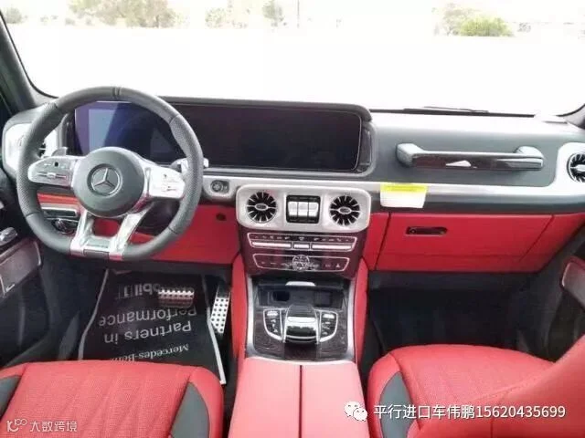 19款奔驰G63中控台的出风口均采用镀铬装饰,采用了奔驰最新的双屏幕式设计,全液晶仪表盘和中控台屏幕都达到12.3英寸,样式更精致档次感更高。座椅均采用黑色并加入红色装饰,多功能方向盘、座椅、仪表板、中控台和门板均采用手工缝制,细节之处更彰显尊贵。