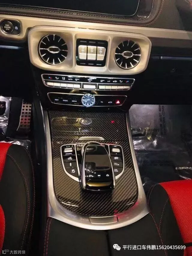 3、19款奔驰G63中控台的出风口均采用镀铬装饰,采用了奔驰最新的双屏幕式设计,全液晶仪表盘和中控台屏幕都达到12.3英寸,样式更精致档次感更高。