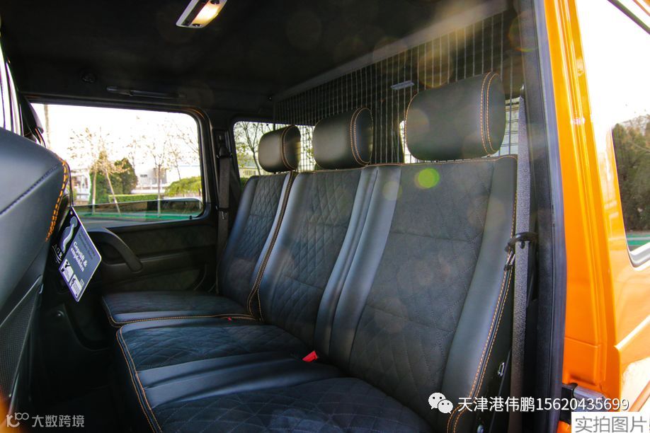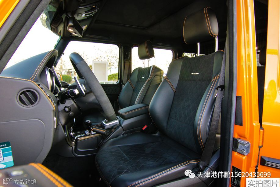 奔驰G500高性能方向盘,使用黑色Nappa真皮包裹,手感出色,集成了多个常用的多功能按键,同时具有换挡拨片。座椅具有多向电动调节、座椅记忆、座椅加热等功能。新车提供多种颜色搭配,提供designo黑色钢琴漆饰件,也可以选装designo香槟白色钢琴漆饰件。新车搭载的全新的COMAND NTG 5信息娱乐系统包含了具有特别附加越野功能的导航系统、LINGUATRONIC多媒体语音控制系统等功能。