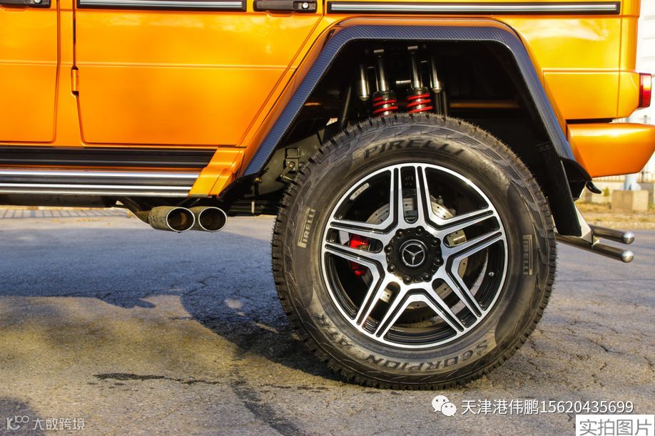 G500 4x4的底盘也基本是6x6车型直接移植过来的,只不过少了一根轴而已,前后轴依旧保持了门式车桥的设计——这也是这款车最大的价值之一。要知道这种设计基本在军用车型中才会见到,比如乌尼莫克和悍马H1,而奔驰现在已经将其放在了G级车型上,性能可以随意想象了。G500 4x4底盘的最大改动是它的每个车轮都采用了双弹簧和避震器的结构,并且提供了“舒适”和“运动”两种模式以供选择。除此之外,它拥有极为复杂的悬挂几何。