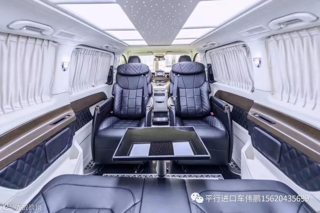 奔驰V250单从外观角度审视它,圆润的线条,飞翼式的镀铬进气格栅,以及修长的LED带自适应功能的大灯组等等这些设计元素,都能为人带来一种轻松、舒畅的第一印象,19款奔驰V250L版V-Class V250L 运用了多种高科技化的主被动安全设备,例如在中央的巨大的奔驰标志,不单单是一个标识,ACC主动巡航系统的装置也集成在里面,此项功能可自动控制V250L 与前车车距,并进行自动巡航行驶。