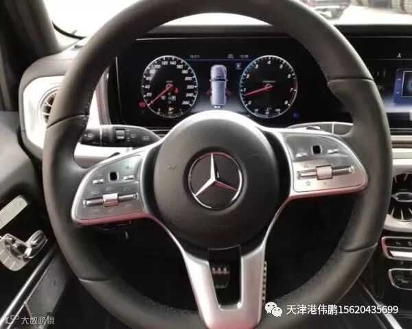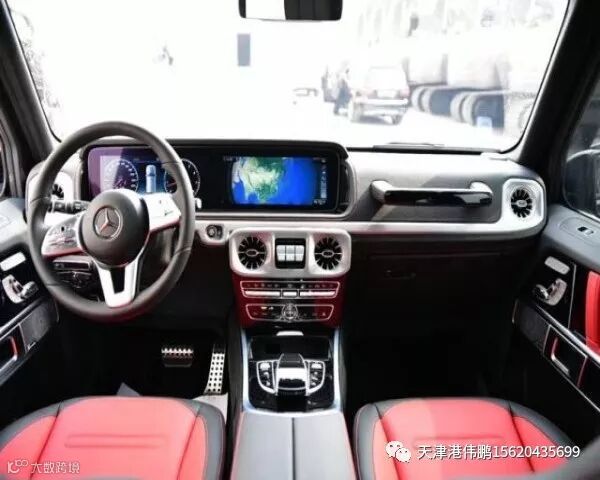 19款奔驰G550经过全新改款中控大屏和仪表部分也采用了科技感满满的双12.3寸巨幕,空调出风口也改为重新设计的炮筒式,豪华感和科技感大大提升。搭载的4.0L双增压V8发动力。
