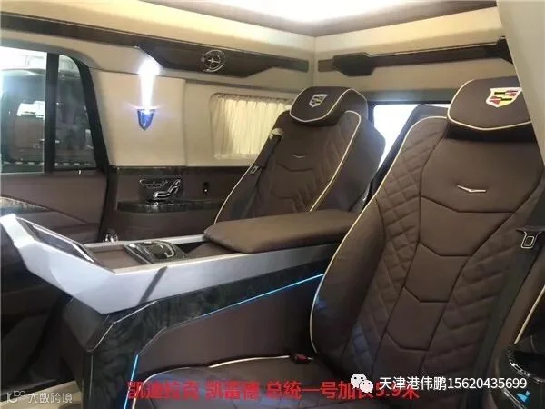 凯迪拉克加长版总统一号内部布局非常精巧且奢华,科技感十足。得益于近6米的车身及超过3米的轴距,4+2座布局的内部空间依然宽大。相信大家一定会喜欢这款即商务又运动的全尺寸豪华SUV。我不知道什么身份可以坐它,我只知道坐它的都有身份。
