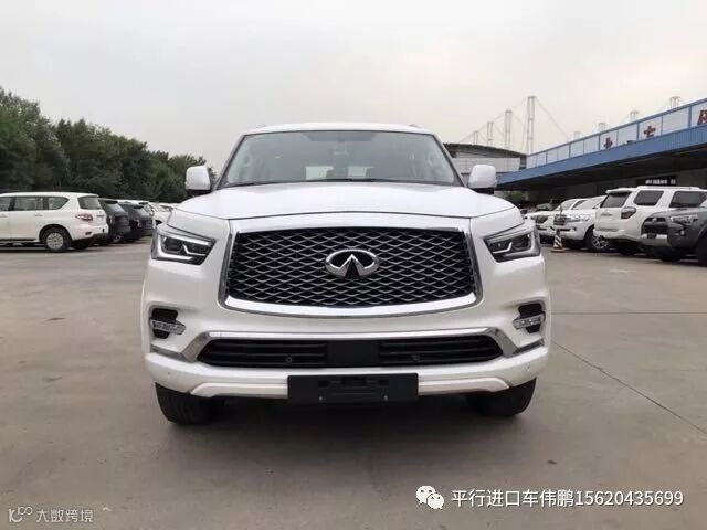 英菲尼迪QX80与老款之间外观上最大的区别在于引用了较多的镀铬装饰,进气格栅一改现款车型的五条横向镀铬饰条造型,选择的是网状设计,前大灯由老款的氙气大灯升级为LED大灯,增加了智能远近光辅助系统,下进气口添加了镀铬装饰条;雾灯造型也由老款的圆形改为了四边形。