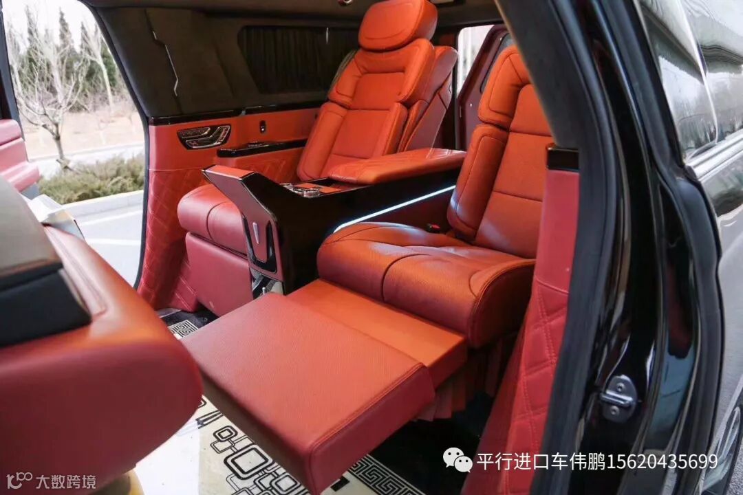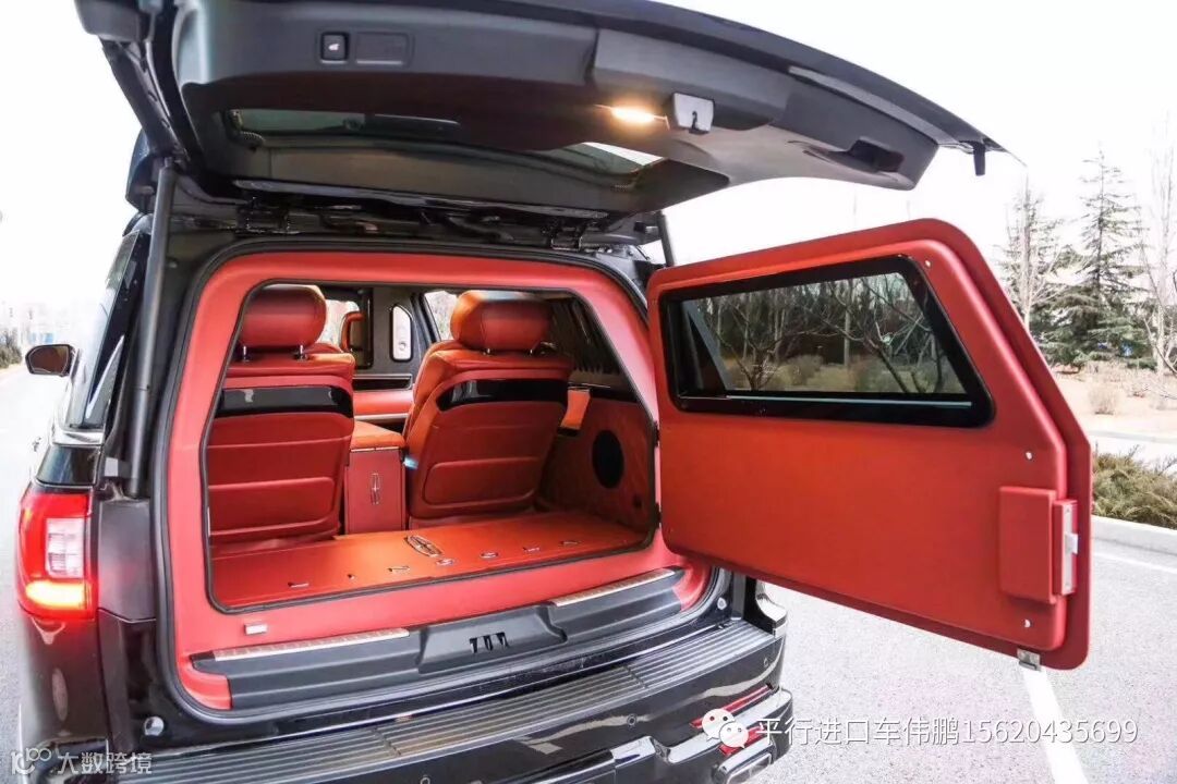 2018款林肯领航员外交官3.5T 车长5.7米,高2.1米,宽2.07米,【1】全车VIP大包围,车顶升高【2】20寸轮毂,【3】原车电动踏板,【4】多功能方向盘,【5】40寸曲屏电视 4K高清电视,【6】梦幻星光顶,气氛灯,【7】分隔舱,7寸智能电容中央控制触摸屏,控制车内灯光、【8】后仓《林肯原厂座椅开关控制》 总统席商务座椅22向调节(带通风加热按摩 、舒适腿托、肩部调节)【9】后排扶手隐藏折叠小桌板,【10】美国锐威revel搭配意大利歌剧世家HI-FI发烧音响,【11】小米智能电视盒,支持WI-FI上网,支持高清电影播放,【12】高端树脂、实木、印花地板,【13】电动私密窗帘,【14】电动控制 热水壶, 【15】后仓隐藏防盗密码箱,【16】后尾门防撞防弹【17】全车林肯原厂水转印桃木升级