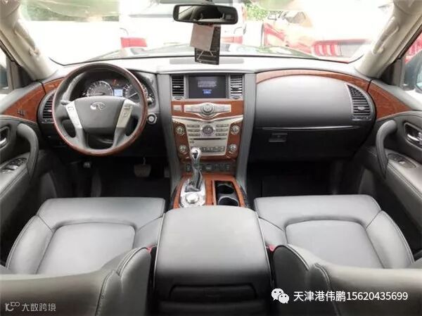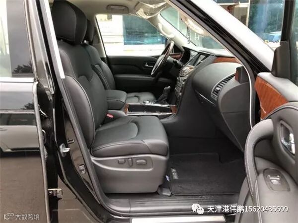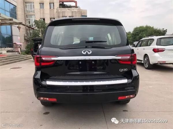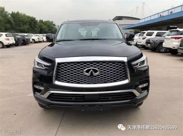 18款英菲尼迪QX80 配置:5.6排量v8 398马力 7速 全时四驱 拖车模式 雪地模式 多功能方向盘 一键启动 无钥匙进入 真皮内饰 真皮座椅 主驾座椅记忆 主副8项电动座椅 腰部支撑 触摸大屏 自动空调 钟表 座椅加热 天窗 自动防炫目后视镜 桃木内饰 电动尾门 冰箱 后排自动空调 后娱 第三排座椅电动收放 隐藏脱钩 前后电眼8个 led大灯 led日行灯 自动大灯 22轮 环影 胎压 8气囊 定速巡航 行李架 方向盘电动调节 bose音响 高配ProACTIVE包 包含以下配置: 半苯胺真皮座椅 桃木方向盘 前排座椅通风 第二排座椅电动折叠 15个扬声器bose音响 流媒体后视镜 自适应巡航 车道保持 前碰撞预警 智能刹车辅助 倒车碰撞预防 盲区警示及侧碰修