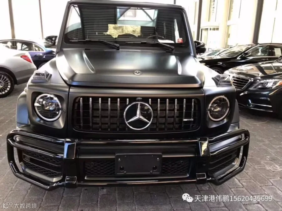 19款奔驰【AMG G63】新车简介奔驰G63 AMG 它就像一个铁箱子,没有多余的弧度、没有任何曲线,眼光所及满是平直锋利的线条,就连车顶上的导雨沟槽,也是沿着车顶周围一圈,分外焊接上去的金属槽,车门搭钮更是绝不虚心,硬挺挺地屹立在门缝之外,外凸的轮拱、造型如同倒梯形的引擎盖。