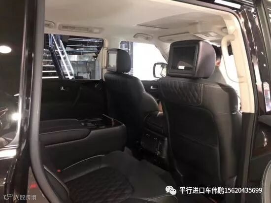 英菲尼迪QX80配置详情:5.6L、398马力、V8、7挡手自一体、全时四驱、八个气囊、胎压监测、车身稳定系统、环车影像、定速巡航、中央差速锁、电动天窗、铝合金轮毂、电尾门、行李架、一键启动、无钥匙进入、多功能真皮方向盘、腰部支撑、后排娱乐、雾灯、氙灯HBMC液压车身平衡控制系统、BOSE音响13个扬声器、自动开关双氙气大灯、带弯道辅助照明系统、集成式日间照明、远光灯辅助、主驾、副驾8向调节、停车辅助、遥控启动、MOD第三代环影、座椅记忆、第三排电动、22轮、桃木内饰、7寸触摸屏、后排空调独立调节。