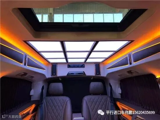 进口奔驰V250改装六座房车迈巴赫版,全新规划的三幅式方向盘更是选用了内嵌真皮外镶桃木的精美技术,炮筒式仪表盘,造型时尚,奔驰V250商务 车中央是一块高分辨率驾驶显示屏,科技配置还有超薄液晶电视、8.1寸独立悬浮屏、蓝光播放器以及DVB-T信号接收系统等。进口奔驰V250商务车中央 扶手箱,被设计成了一个拥有最冷可达零下18度的车载冰箱,夏日出行更为便捷!还有多种辅助系统保护您的安全,例如:定速巡航系统、胎压监测系统、碰撞预防辅助系统、360度全景摄像头等等。