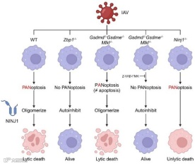 本研究系统阐明了 NINJ1在IAV诱导的PANoptosis中的关键作用,并为未来重症病毒性肺炎的治疗探索提供了新方向: