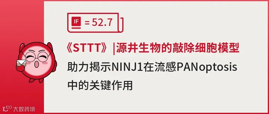 2025年9月,中日友好医院曹彬教授团队在 Signal Transduction and Targeted Therapy 在线发表最新研究成果,系统阐述了跨膜蛋白 Ninjurin-1(NINJ1) 在甲型流感病毒(IAV)感染过程中发挥的关键作用。源井生物为该研究提供了NINJ1 Knockout cell line (A549)、NINJ1 Knockout cell line (THP-1)敲除细胞系模型支持。