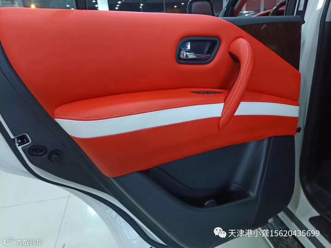 18款日产途乐4.0XE版改装红白双拼真皮包裹与桃木内饰相结合,凸显出豪华品质与年轻态,提升车辆价值观.