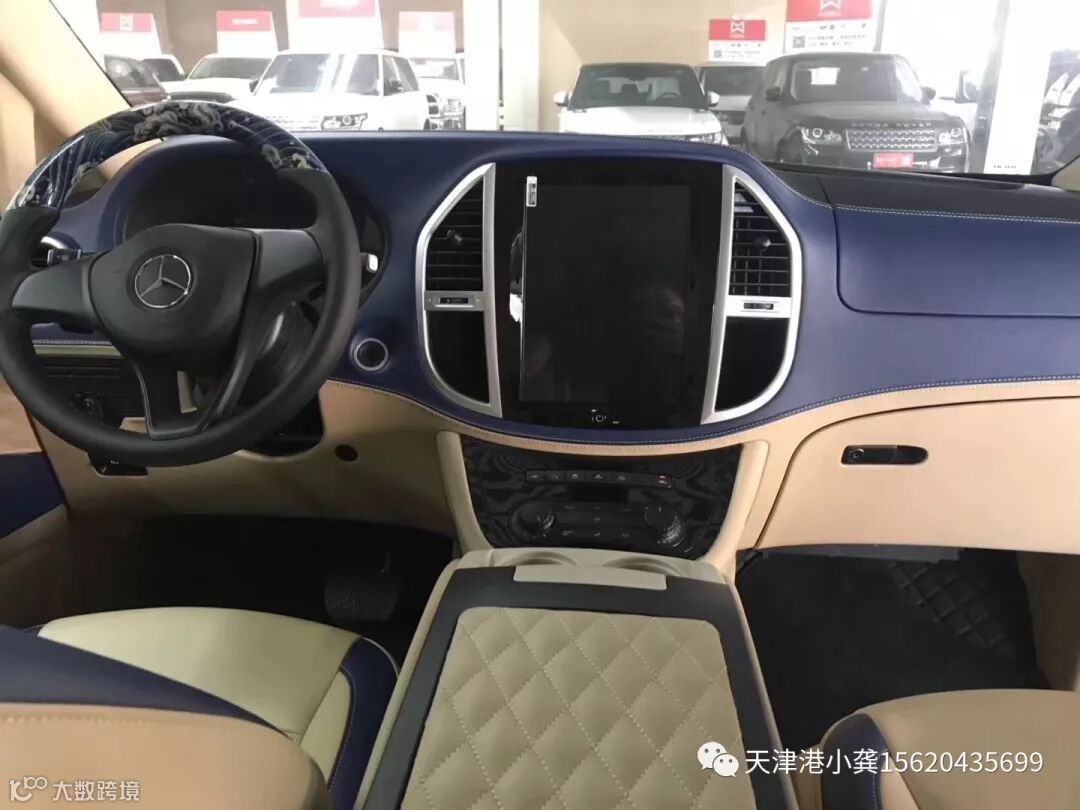 这款奔驰麦特斯加装的配置有:17寸合金轮毂,行李架,V一CLASS中网,中文导航,中央竖屏式大屏导航,LED鹰眼氙气大灯,前雾灯,流水型转向灯,格型包覆中央扶手带冰箱,仪表台全皮包覆,内门板包覆,真皮桃木方向盘,主副驾驶电动加热座椅,第二排通风加热可旋转航空座椅带腿托,第三排电动可放平座椅带腿托,第三排杯架,双侧电动门,豪华整车进口窗帘,后掀式电尾门,可拆卸式小桌板,豪华游艇木地板,吸顶DVD,主副驾驶后背小桌板,后排挂衣架,全包围门槛条(带灯),顶部七彩十二宫格及鹿皮绒包覆,贵宾区强化隔音隔热处理,触控屏调光控制系统,自动空调,ECO启停。