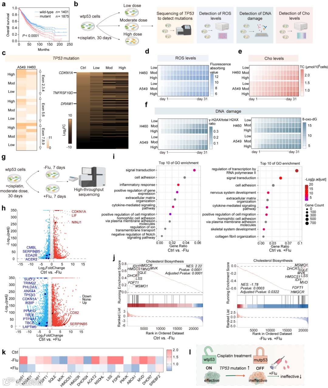 非小细胞肺癌由于TP53高突变水平表现出高耐药性,导致治疗效果差、生存率低。顺铂作为非小细胞肺癌的一线治疗药物,却也存在引起突变的风险。如果顺铂化疗期间p53突变累积,将进一步影响患者化疗后的生存率。因此,开发一种独立于p53通路的肿瘤药物治疗方案非常重要。