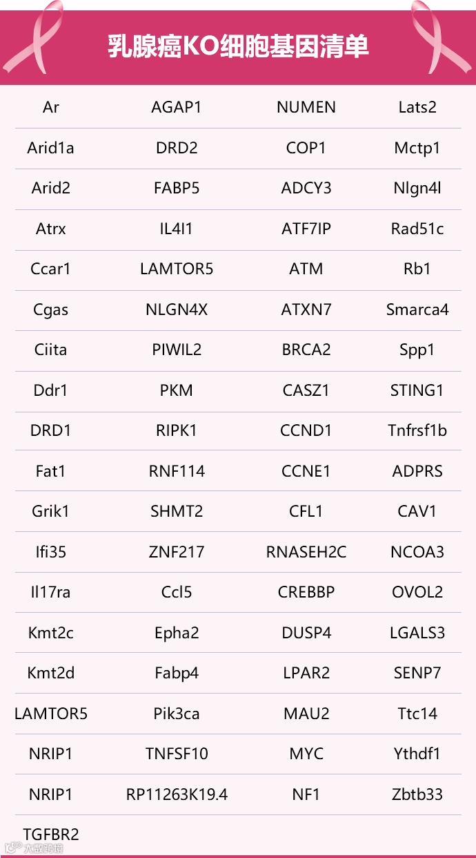 乳腺癌KO细胞现货,低至¥4980,基因清单见文末;