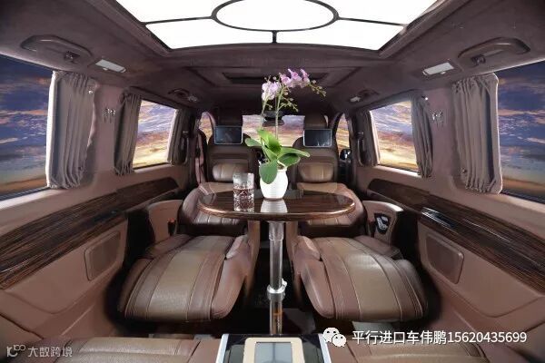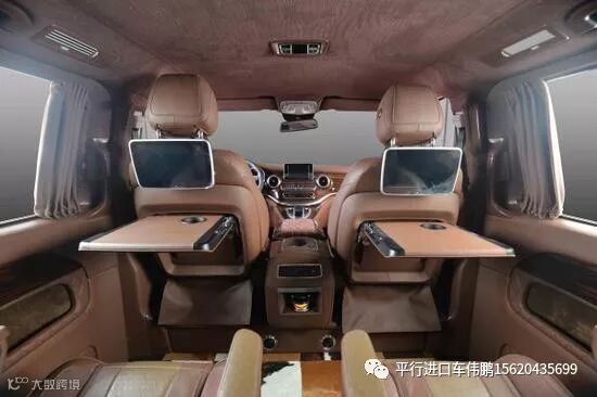2018款奔驰V250加高顶车身发明的相似奔驰斯宾特豪华房车的前后舱全距离式计划格局,使二者有相对独立的空间和空气感,一同又具有了更佳完备的隔音防噪体现,集 成了32寸LED液晶电视,环绕式立体声音响以及进口时钟套件,下设多功用一体式吧台,钢琴烤漆原料的桌台,预留了行车途中有用的杯托计划,其下依次为后 舱电器触控屏与蓝光DVD多媒体播放模块。