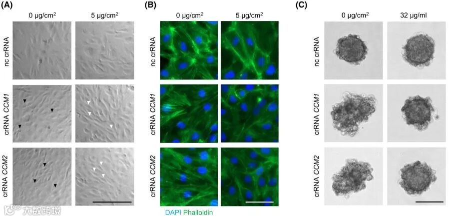 图3 加入纤连蛋白可拯救CCM1或CCM2基因缺失细胞的异常表型[5]