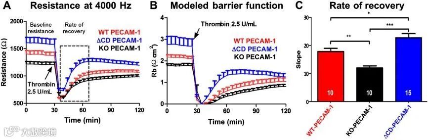 图2 PECAM-1 胞质结构域的缺失可增强屏障恢复功能[4]
