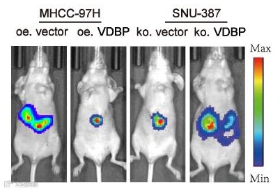 作者揭示了维生素D结合蛋白(VDBP)在肝细胞癌(HCC)中通过抑制血管生成拟态(VM)来发挥抗肿瘤作用,并提出了将维生素D与抗PD-1疗法结合作为增强免疫疗法疗效的策略。该研究采用源井生物构建的SNU-387-Luc细胞系植入免疫缺陷的小鼠,用于评估VDBP敲除对肿瘤生长和宿主生存期的影响[3]。