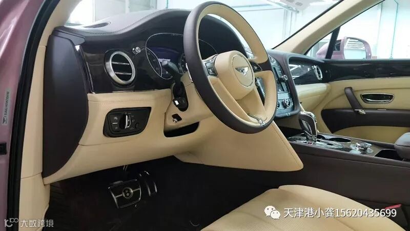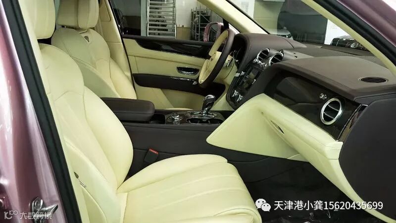 19款欧版宾利添越4.0T汽油版内饰选用米色同黑色搭配,选用高原野生小牛皮座椅精心制作而成,