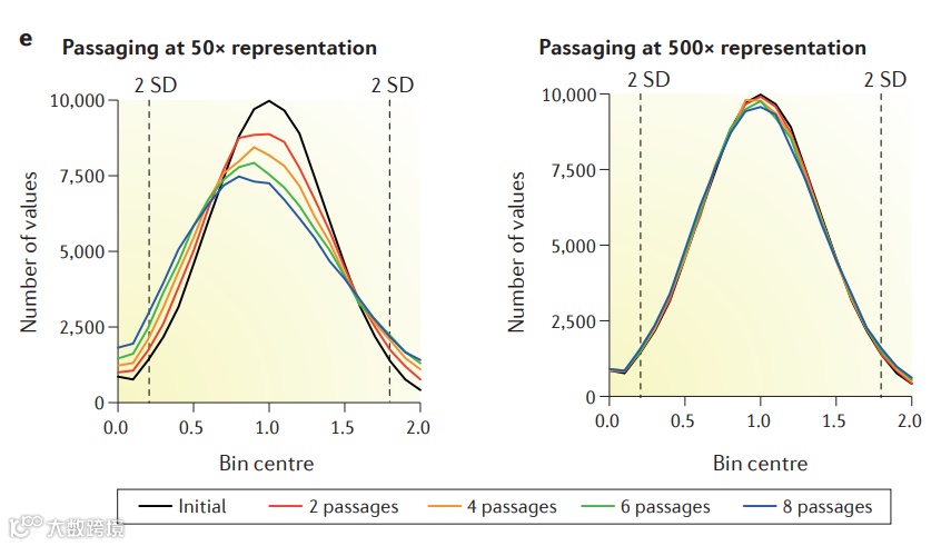 研究表明,当文库细胞感染初始的代表深度较低的情况下(50x),随着细胞代次的增加,sgRNA覆盖度会显著降低;而在保证文库细胞感染初始的代表深度的前提下(>500x),细胞传代至P8,对sgRNA的覆盖度也不会造成明显影响。