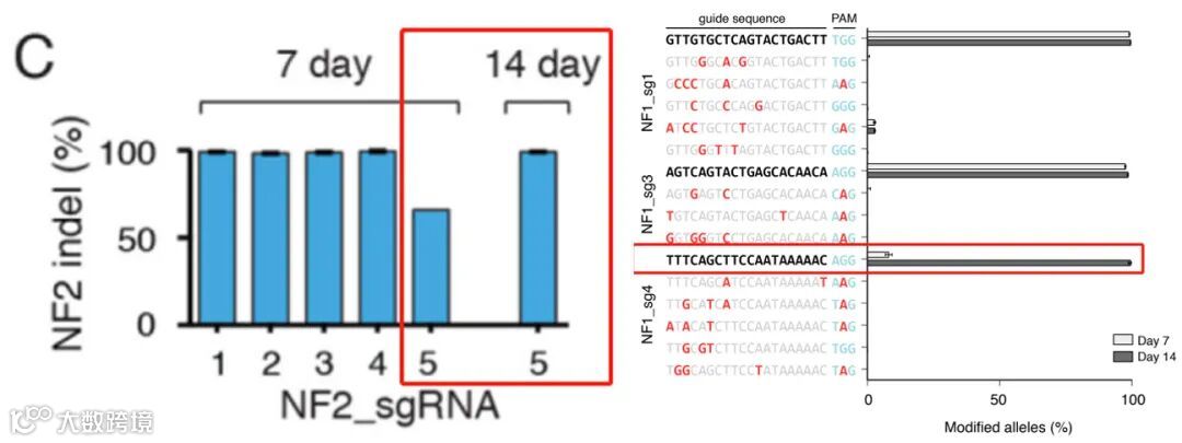 图2 文库细胞中部分sgRNA编辑效率受细胞培养时长的影响
