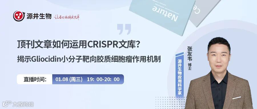为了帮助大家快速上手这一强大工具,源井生物诚挚推出 <顶刊文章如何运用CRISPR文库?> 直播系列,分享最新研究应用思路。