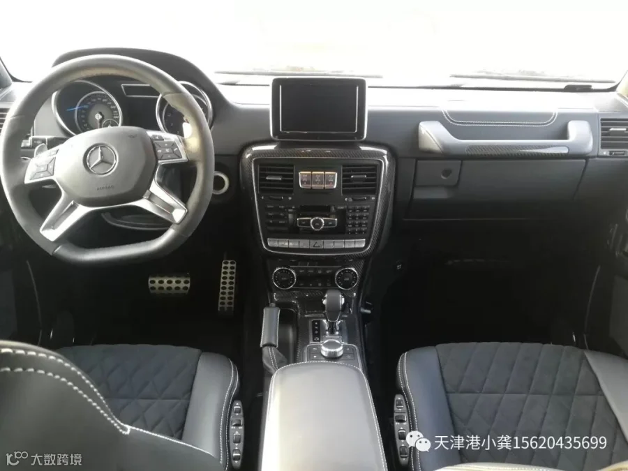 奔驰G500 4*4 高性能方向盘,使用黑色Nappa真皮包裹,手感出色,集成了多个常用的多功能按键,同时具有换挡拨片。座椅具有多向电动调节、座椅记忆、座椅加热等功能。新车提供多种颜色搭配,提供designo黑色钢琴漆饰件,也可以选装designo香槟白色钢琴漆饰件。新车搭载的全新的COMAND NTG 5信息娱乐系统包含了具有特别附加越野功能的导航系统、LINGUATRONIC多媒体语音控制系统等功能。