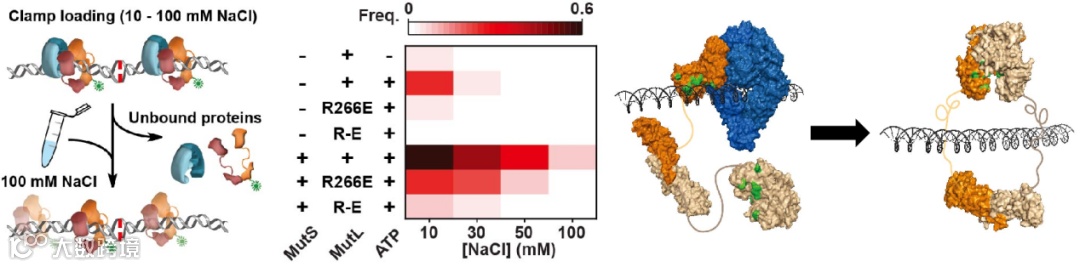 在E.coli的MMR系统中,MutS识别错配后会招募MutL形成复合物,再由MutL介导下游蛋白的激活,进行错配修复(图1)。从错配的识别,到特定位点的剪切,信号传递的过程需要同时具备高效性和特异性。
