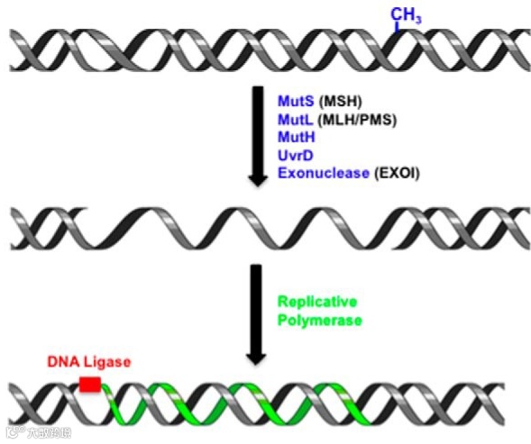 图1. DNA错配修复过程[1]