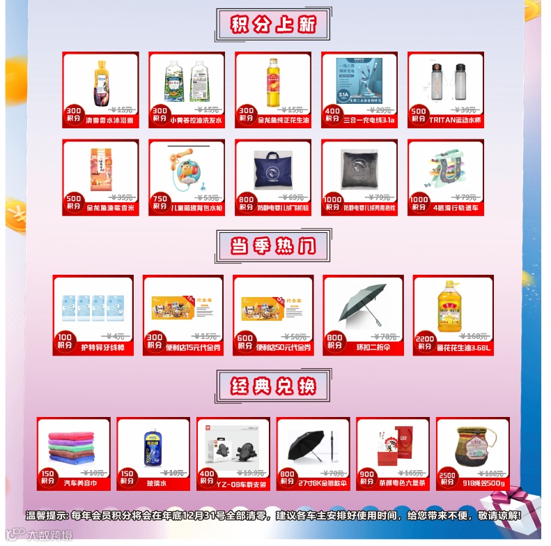 请您在有效期内兑换超值好礼,避免积分浪费。