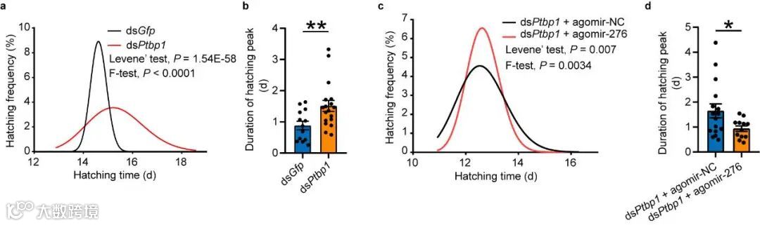 图6. PTBP1-miR-276促进飞蝗后代卵的同步孵化