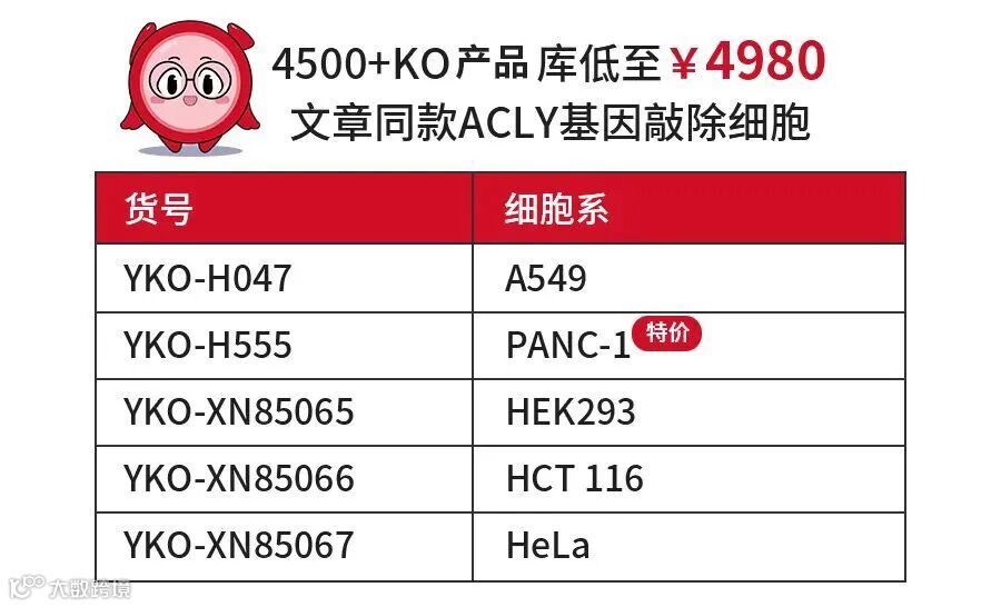 4. Lin R, Tao R, Gao X, et al. Acetylation stabilizes ATP-citrate lyase to promote lipid biosynthesis and tumor growth. Mol Cell. 2013. 51(4): 506-518.