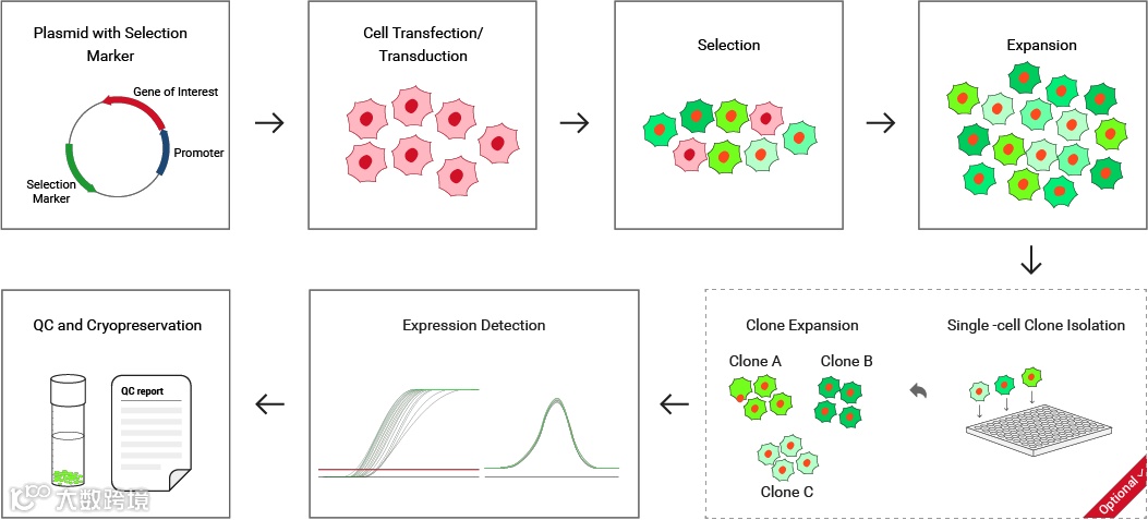 源井生物EZ-OE™稳转株可通过慢病毒法、转座子法以及特定位点重组法等方式构建。凭借CRISPR-U™细胞平台累积的超200种细胞系最佳编辑参数,EZ-OE™稳转株可轻松实现最佳转染率,达到靶基因高表达、稳定整合的目的。更有EZ-editor™独家单克隆培养技术,可高通量分选差异表达的克隆,满足不同研究需求。