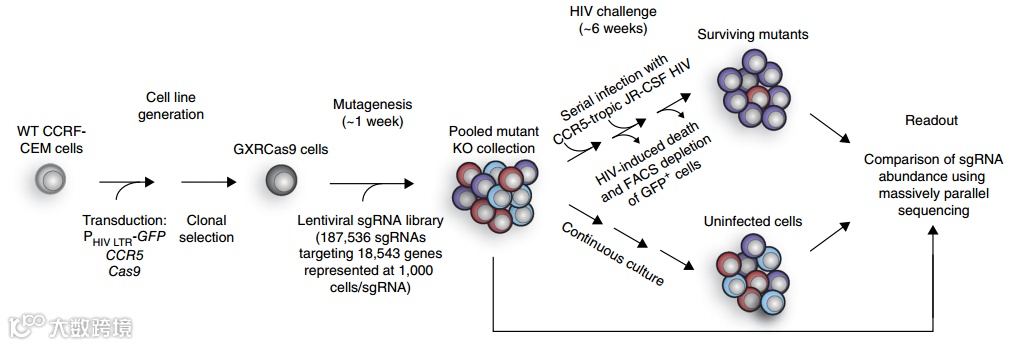 图2 HIV宿主依赖因子的全基因组CRISPR筛选
