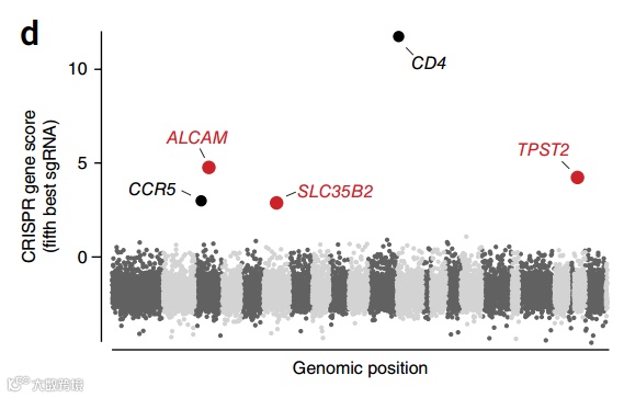 为了探究TPST2、SLC35B2和ALCAM基因的缺失是如何抵抗HIV感染这一问题,作者使用CRISPR-Cas9系统构建了敲除这些基因的克隆GXRCas9细胞系并开展了一系列实验进行验证,结果表明,TPST2和SLC35B2可以促进HIV包膜识别CCR5,而ALCAM分子介导细胞间HIV传播,这一结果为治疗HIV病毒感染提供了潜在靶点。
