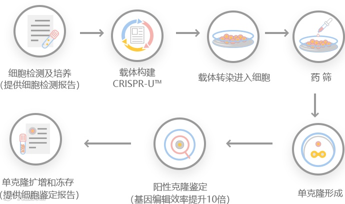 图:CRISPR-U™编辑的ARPE-19细胞模型的客制化产品流程