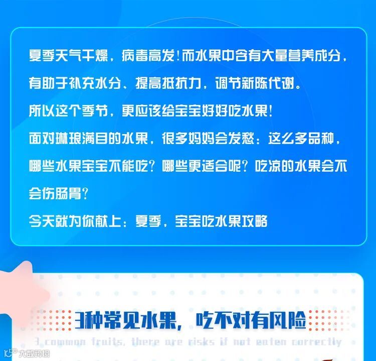导读:这么多品种,哪些水果宝宝不能吃?哪些更适合呢?吃凉的水果会不会伤肠胃?今天就为你献上:夏季,宝宝吃水果攻略