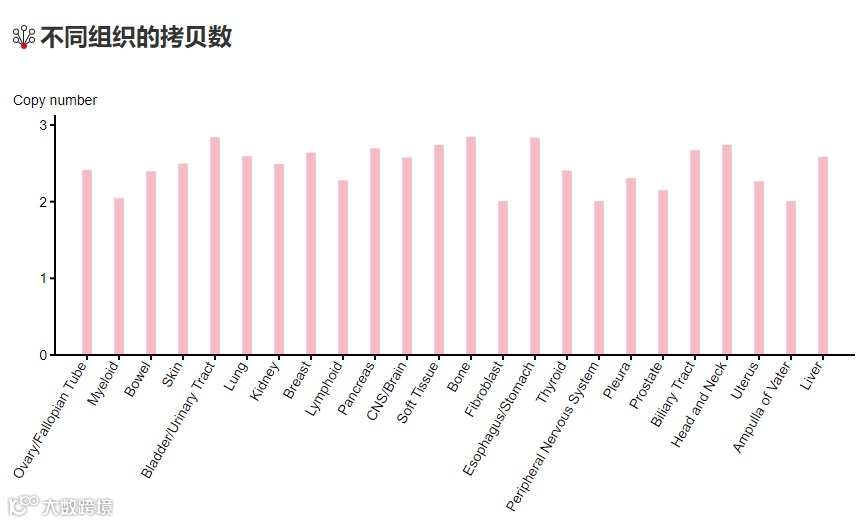 往下拉则是该基因在不同组织中的平均拷贝数分布情况,快速找到拷贝数较高的组织或拷贝数低的组织。