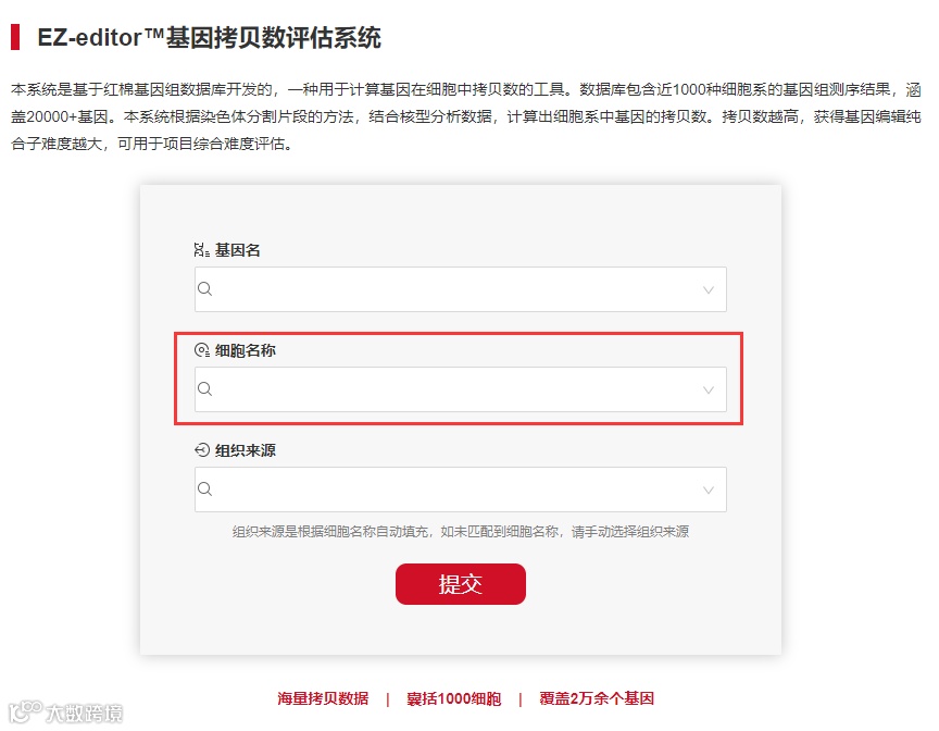 进入红棉基因编辑系统(https://www.rc-crispr.com),在工具栏处选择“EZ-editor™基因拷贝数评估系统”。