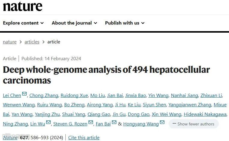 题目:Deep whole-genome analysis of 494 hepatocellular carcinomas