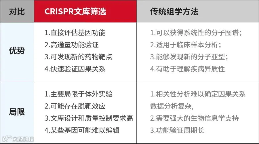 CRISPR文库筛选与传统组学方法筛靶点对比
