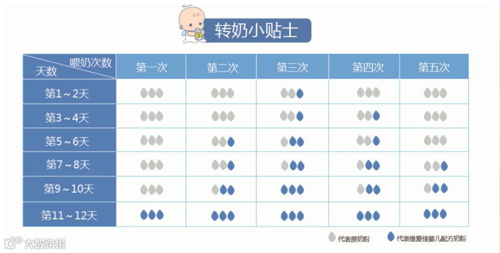 可以参考图示转奶小贴士进行过渡