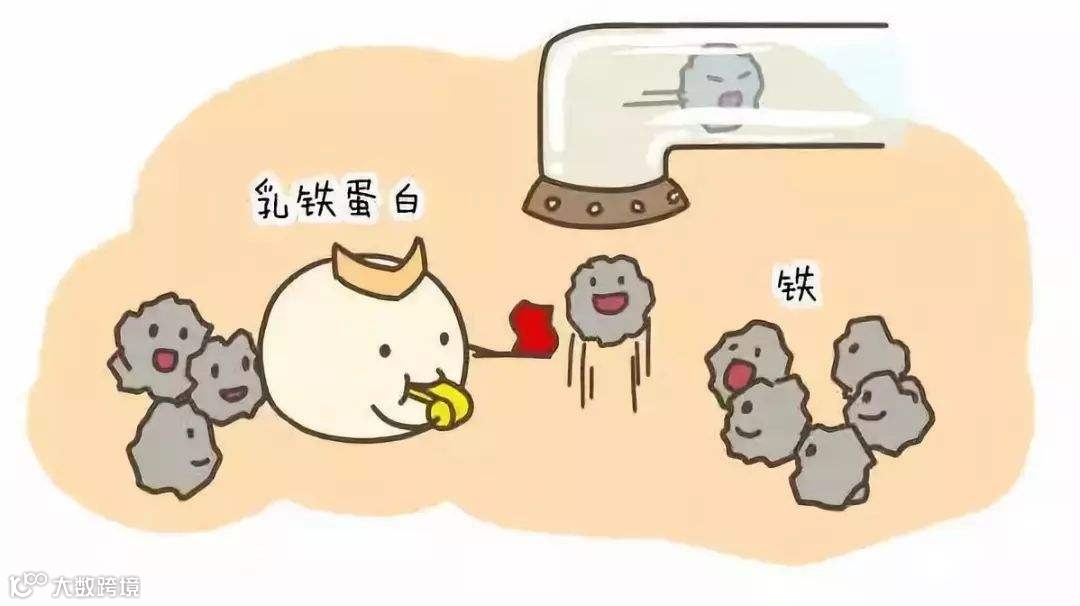 乳铁蛋白能结合二价铁离子和三价铁离子,帮助肠道对铁的吸收,预防缺铁性贫血,在补充铁剂时,如果有乳铁蛋白的参与能减少铁对肠道的刺激和减少无机铁离子的摄入量。